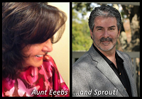 So - I (...Sprout!) searched for a picture of my sister that I knew would not get me in trouble and this is as close as I would dare. All the other pics had expressions of "'you better not!" 'Eeebs' as she was originally dubbed (by my children), plays a big part in the creative side to make the ideas become refined. When we are "in tune" and "clicking", the cute rhymes and alliterations seem to just appear in our laps. Aunt Eeebs enjoys the signing appearances and loves reading and interfacing with the little ones very much.